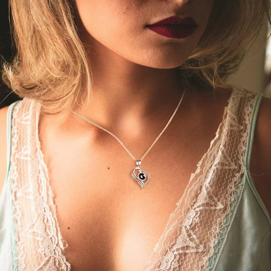 Cross-border popular heart necklace with "I love you" projection in 100 languages, rose gift box, Valentine's Day gift.