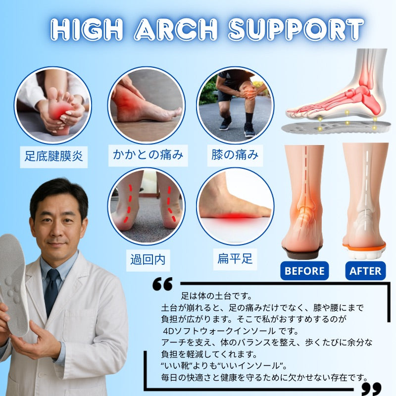 はい、4Dソフトワークインソールは、さまざまな足の不調に対してサポートを提供します。