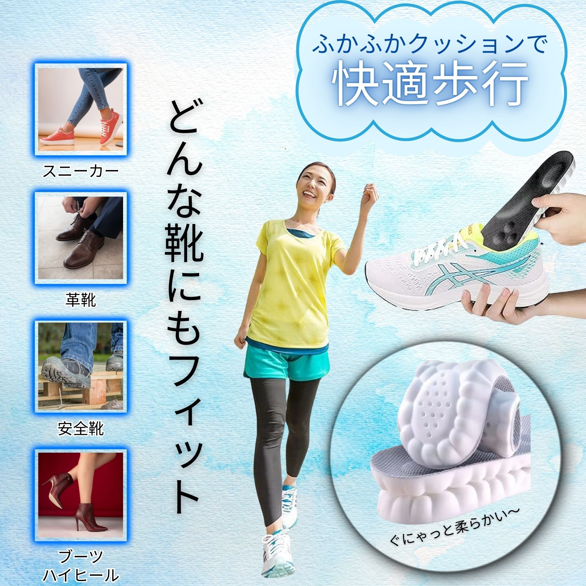 👟 どんな靴にもフィットし、一日中快適に